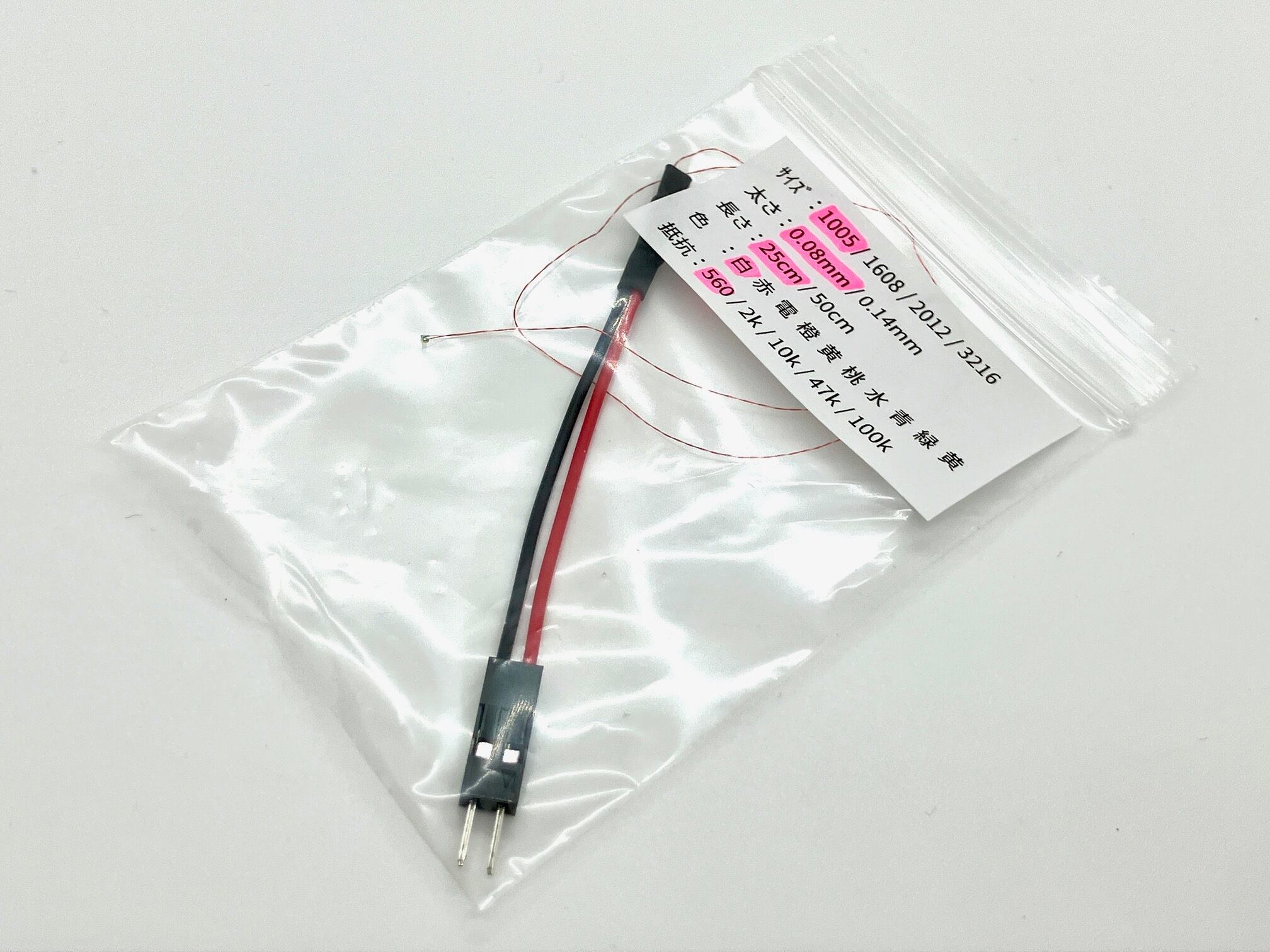■ご購入の際は,ポリウレタン線の細さとポリウレタン線の長さ,固定抵抗値の選択をお願い致します。