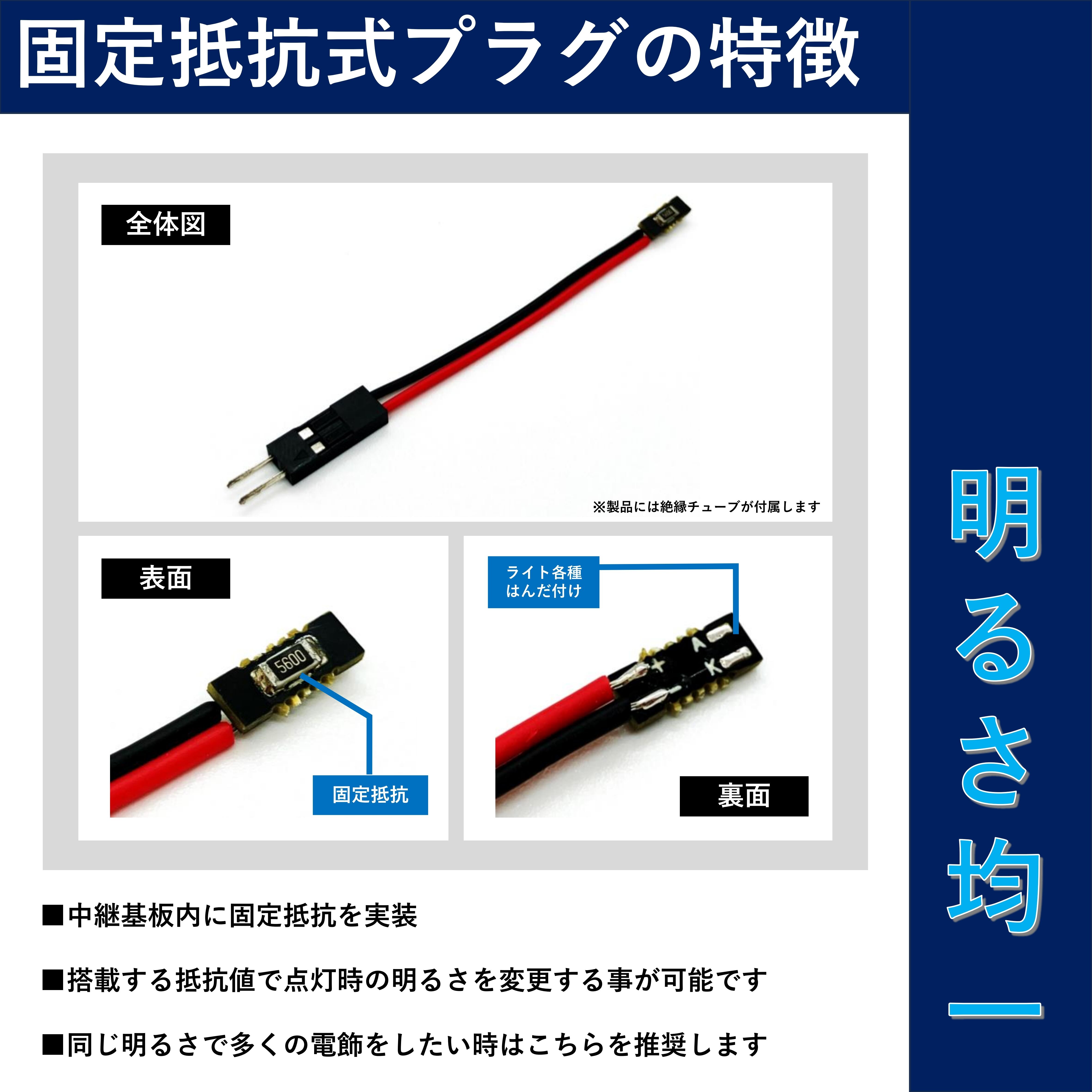 ・固定抵抗値によって明るさの強弱を変化させる事ができます。(画像参照)